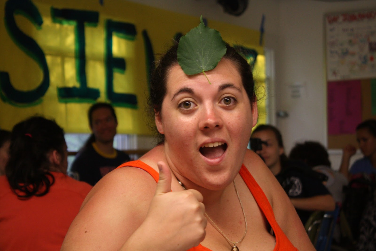 We also had the Sorting Hat tell us what team we were in for COLOR WARS!!!!!!! Which start tomorrow. Here are some pictures of the soon-to-be-winning team, the faBLUEous members of the blue team... and also a picture of Beth with a leaf on her head. Awkward, Beth.