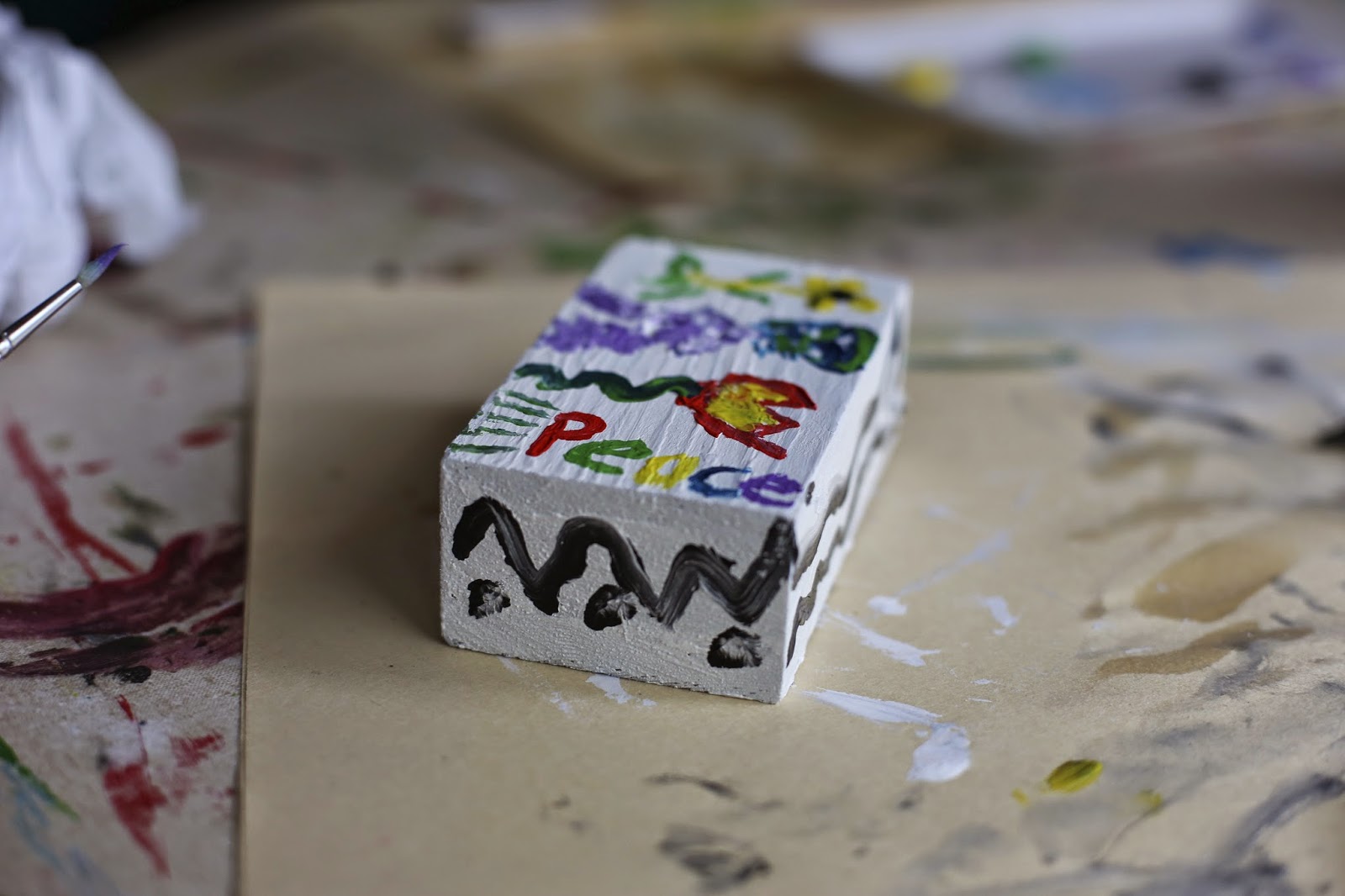 And in art class we began a collaborative art piece where campers and counselors paint pieces of wood and then we assemble them at the end into one giant installation.